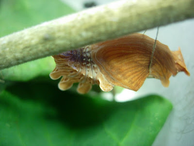 看著小朋友在飼養毛毛蟲一時興起也跟著一起養看看我的成果吧!這是樺斑蝶的幼蟲這是化蛹的樺斑蝶這是破蛹而出的樺斑蝶這是紅紋鳳蝶的幼蟲這是紅紋鳳蝶的蛹...