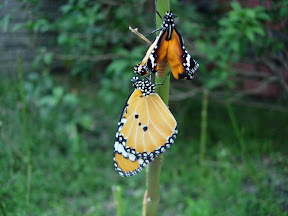 剛好看到樺斑碟破蛹 馬上拿出相機拍下過程...
