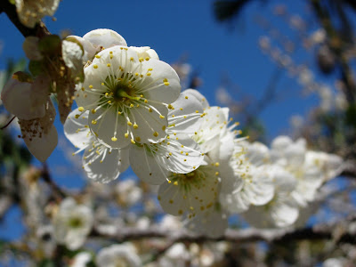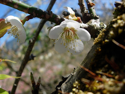 去年來不及欣賞風櫃斗的梅花 今年又差一點錯過 到風櫃斗時看到滿山的梅花 一切的辛苦終究是值得的 雖然沒有數位單眼相機 我仍然努力留下它的倩影 這是梅園養的小白,看牠的樣子還真好笑........